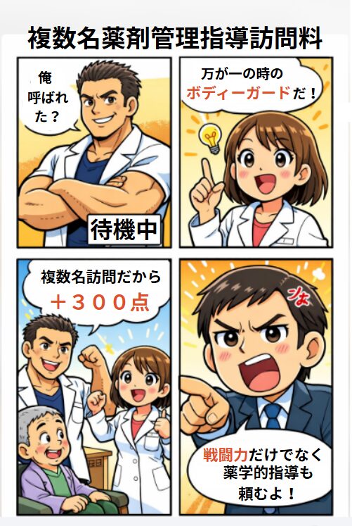 女性薬剤師の安全も守れるし、複数名訪問だから300点も取れる。
