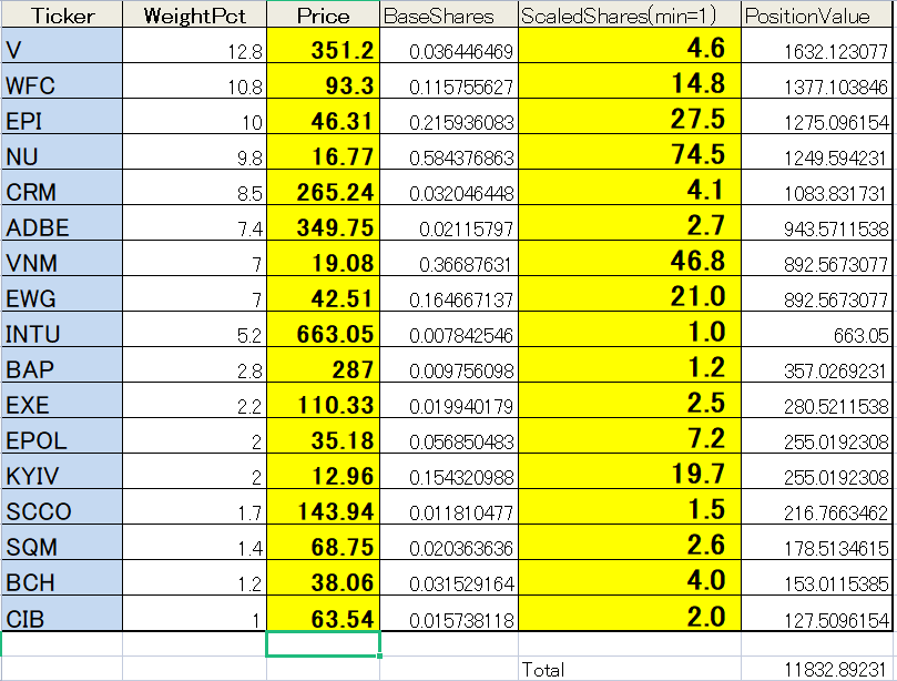 赤字のETFの比率が少ないので、ここを少し上乗せしても、3000ドルくらいで組めそうです。