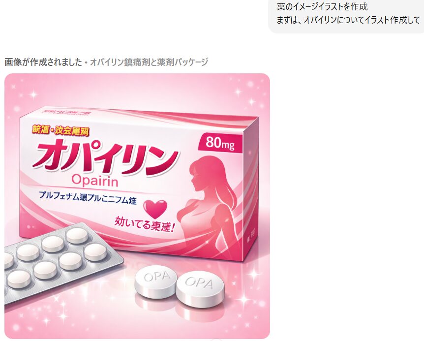 「薬の名前が面白いって、ネットで言われてるやつ。イラストにして」