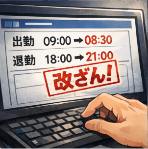 やっていたのは、勤怠の書き換え。