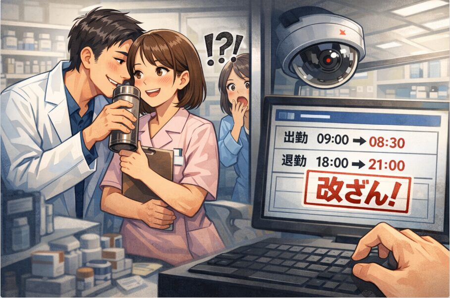 管理薬剤師が、調剤事務の勤務記録を、あとからちょいちょい修正する。
