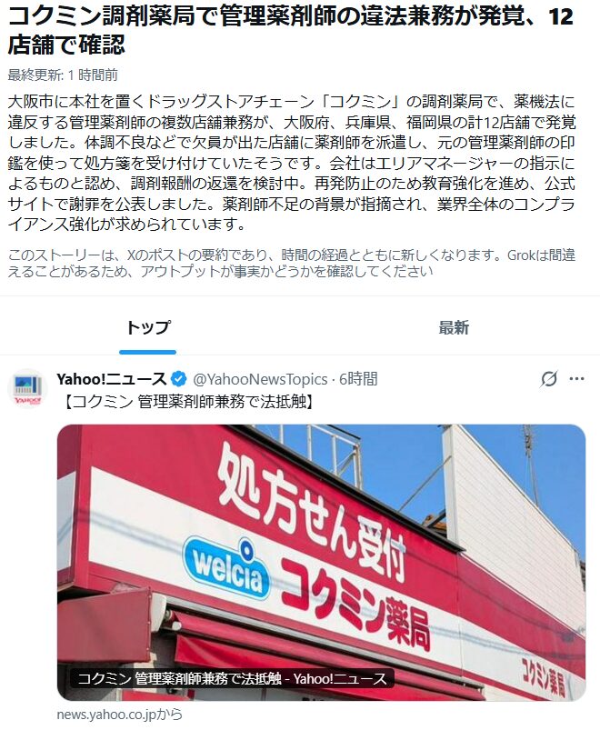 最近、ドラッグストア業界で管理薬剤師の違法兼務に関する問題が報道されました。