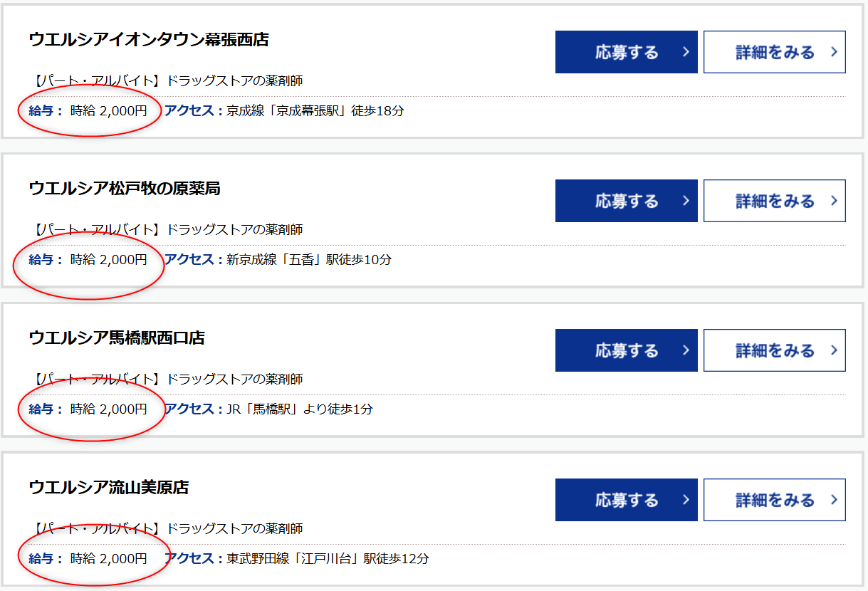 ドラッグストアの薬剤師=時給2,600円前後