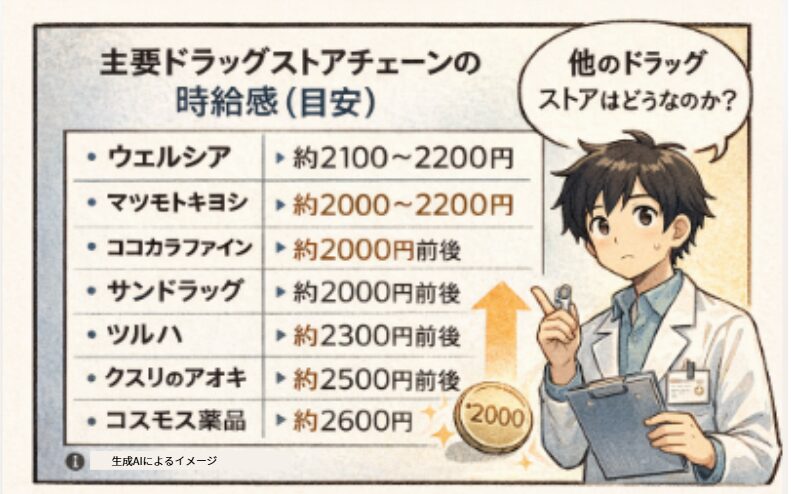 主なドラッグストアチェーンの時給感(目安)(2026.02)
