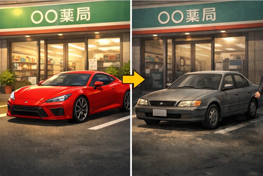 薬局の前に止まると、患者さんが振り返るような車だった。