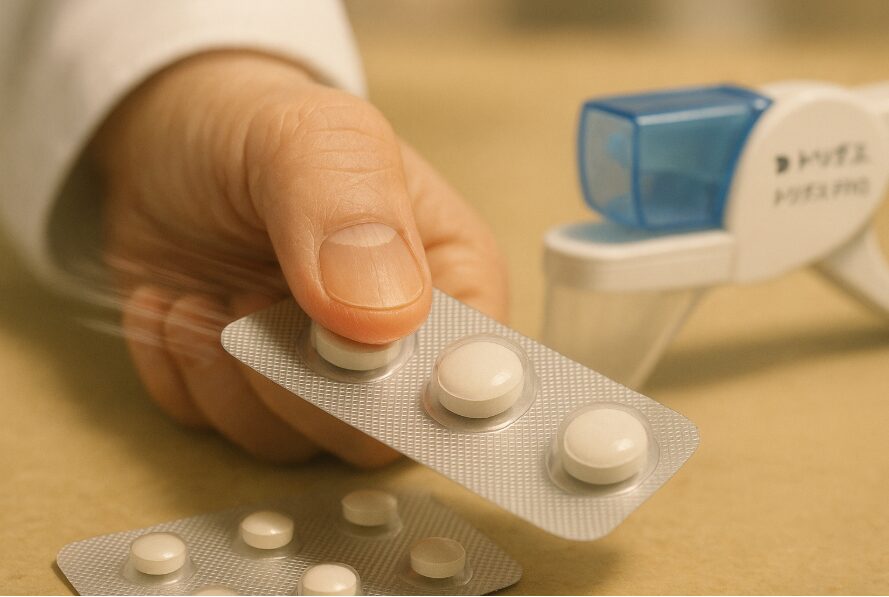 PTPシートから錠剤を取り出す道具、トリダスPROです。